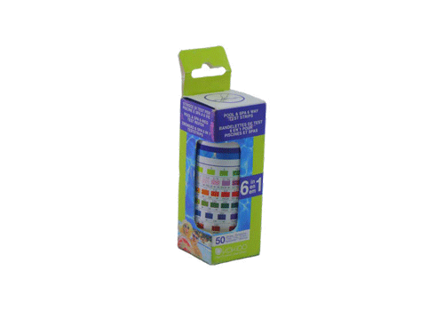 نوار تست کیت شش کاره POOL CAREX حاوی 50 نوار تست با سنجش کلر کل، کلر آزاد، PH، قلیائیت کل همچنین سختی کلسیم و اسید سیانوریک
